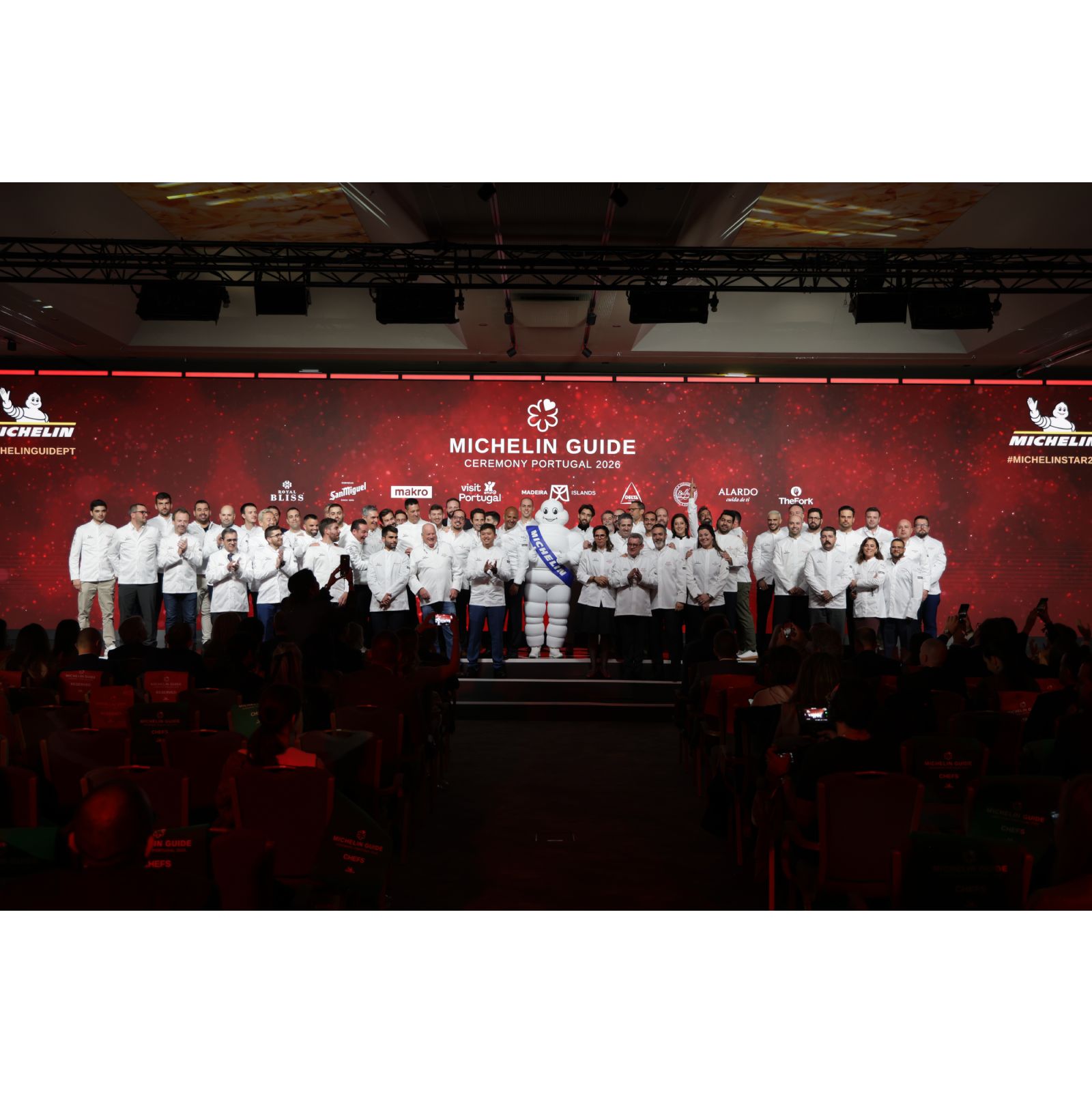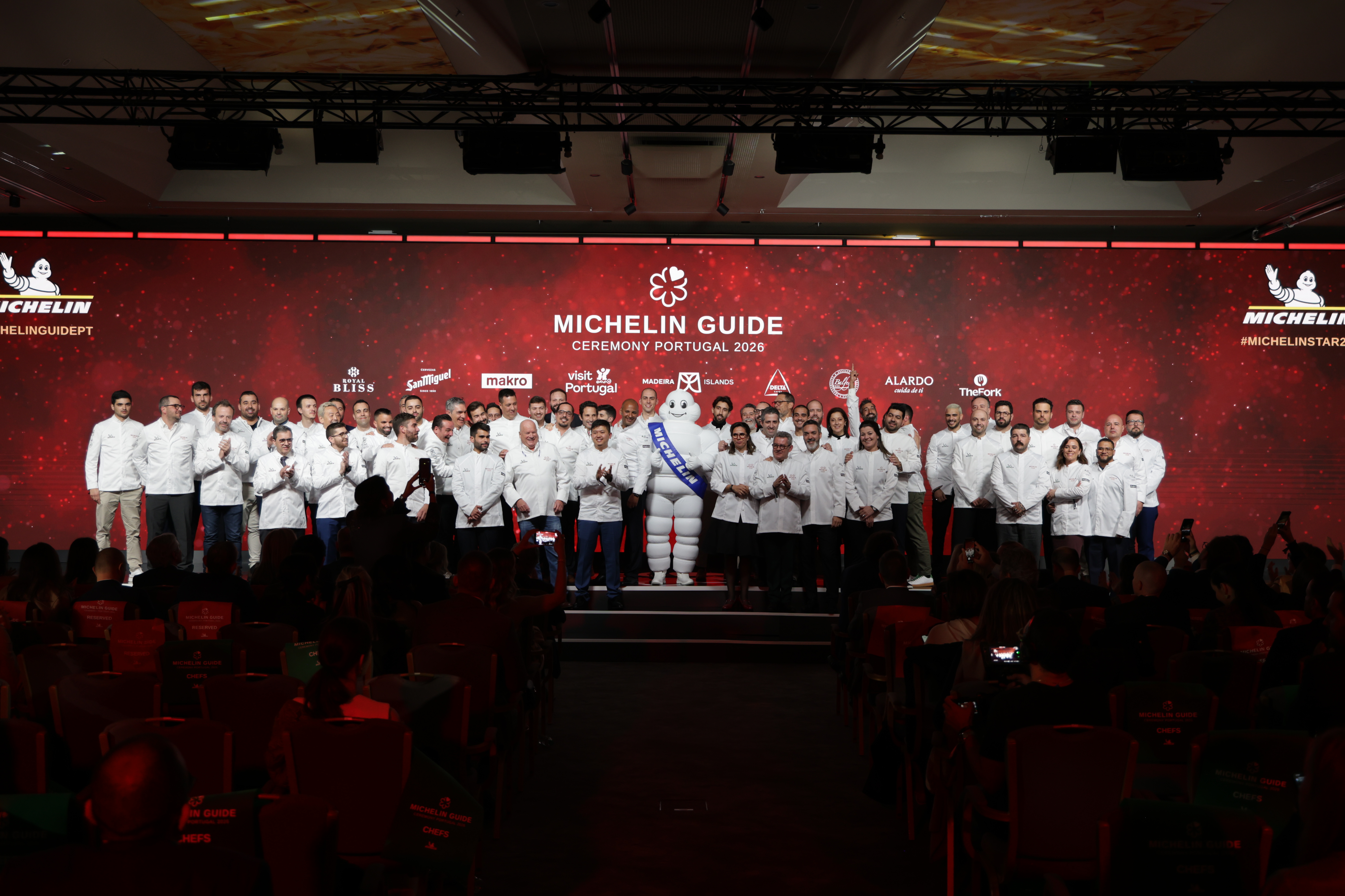 A Michelin agradece o apoio do Turismo de Portugal e da Associação de Promoção da Madeira, assim como da MAKRO, DELTA, BALFEGÓ, SAN MIGUEL, ROYAL BLISS, ALARDO e THEFORK, cuja colaboração tornou possível a realização da Gala do Guia MICHELIN Portugal 2026, impulsionando o seu apoio ao sector gastronómico, e o compromisso com o futuro da cozinha portuguesa.